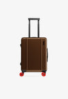 Maleta Floyd confeccionada en 100% policarbonato Makrolon®. Presenta un sistema de ruedas giratorias de monopatín 360º, estructura de marco de aluminio, candado TSA integrado de tres dígitos e incluye una funda guardapolvo Floyd con cordón y bolsa para zapatos.