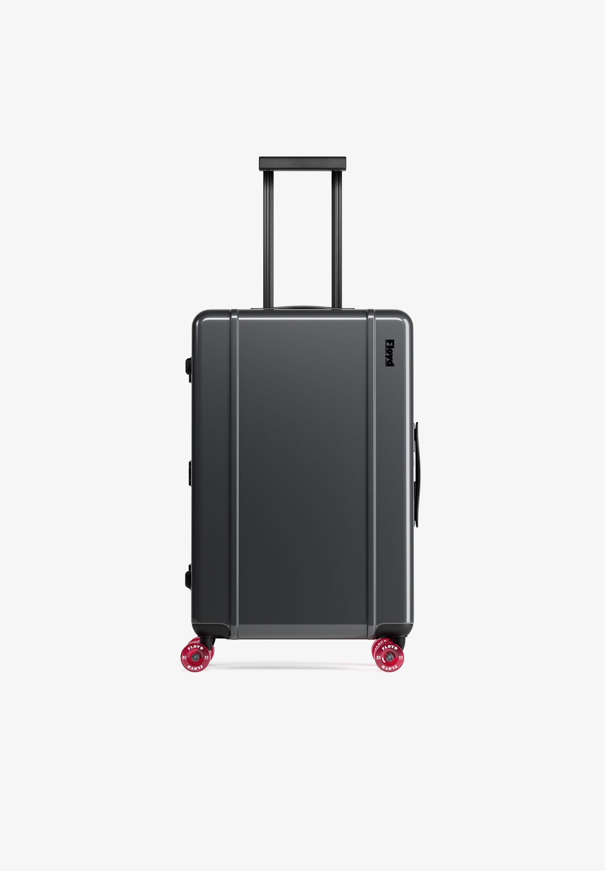 Maleta Floyd confeccionada en 100% policarbonato Makrolon®. Presenta un sistema de ruedas giratorias de monopatín 360º, estructura de marco de aluminio, candado TSA integrado de tres dígitos e incluye una funda guardapolvo Floyd con cordón y bolsa para zapatos.