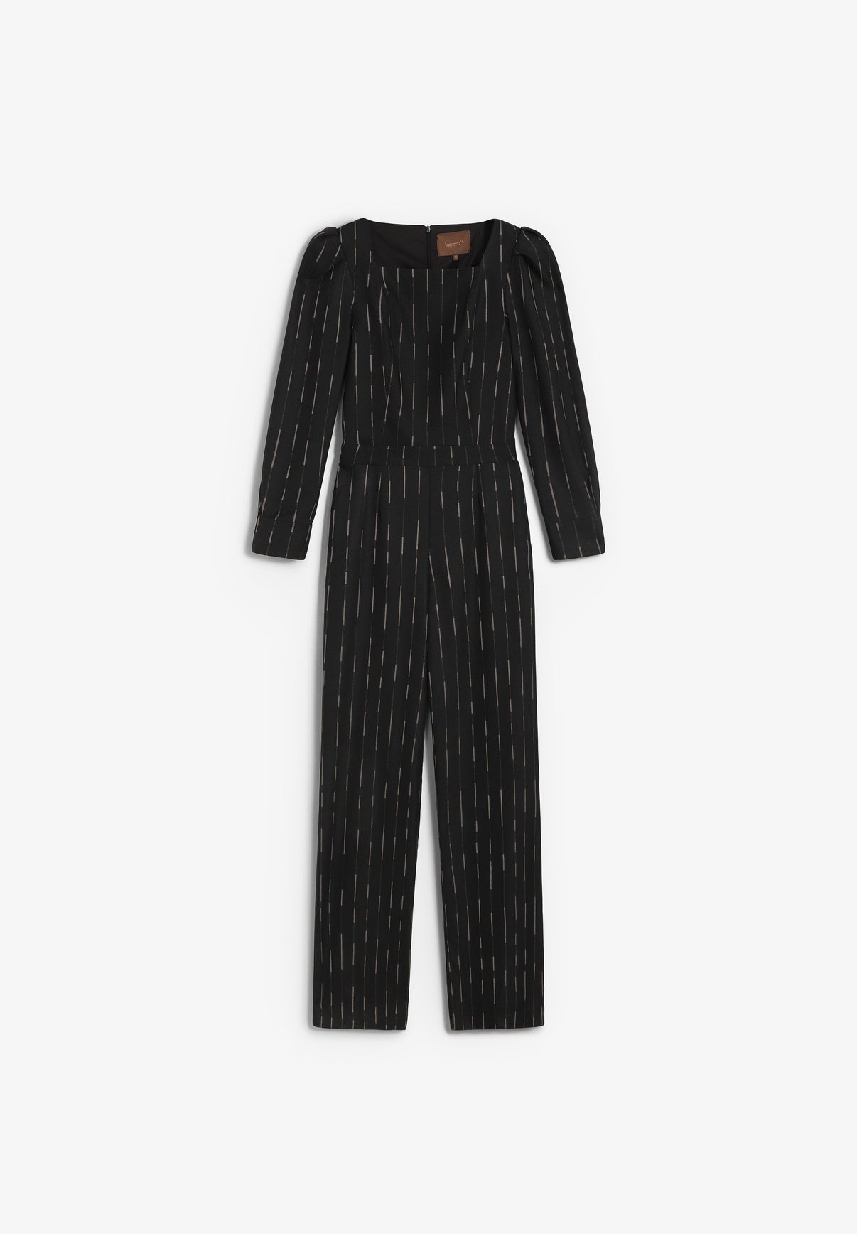 Mono IQ Collection confeccionado en 64% poliéster, 34% viscosa y 2% elastano. El forro está confeccionado en 57% poliéster y 43% elastano. Presenta cuello cuadrado, mangas largas estampadas y cierre con cremallera invisible en la espalda.