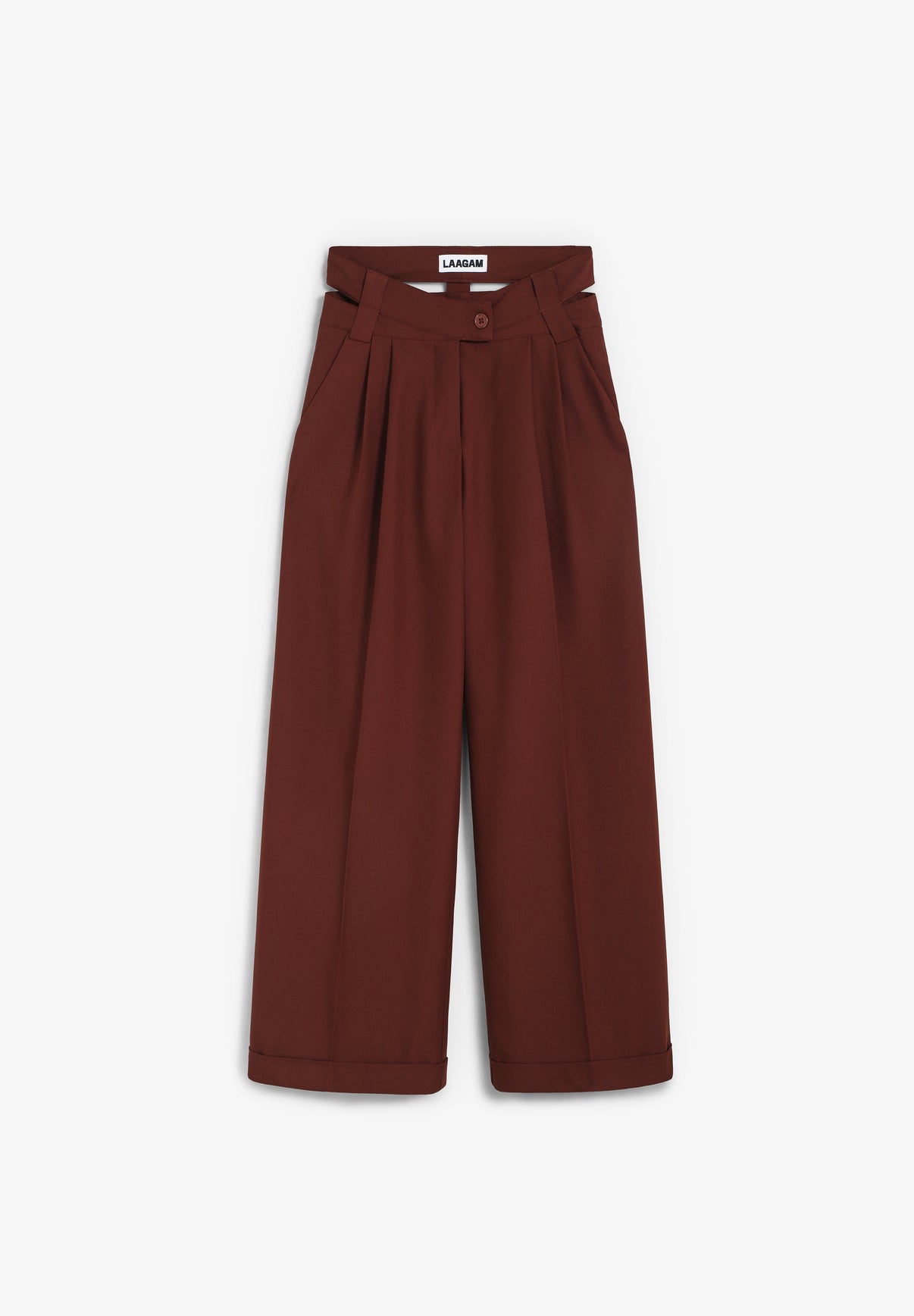 Pantalones Laagam confeccionados en 78% poliéster, 16% viscosa y 6% elastano. Presenta doble cinturilla, bajo con vuelta, dos bolsillos laterales y cierre frontal interior con cremallera y botón.