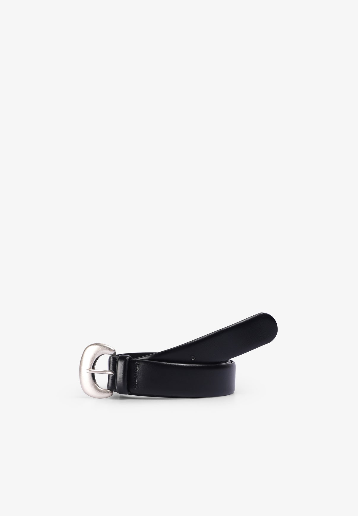 Cinturón Bash confeccionado 100% en piel bovina. Presenta correa revestida de cuero y elegante hebilla con volumen.
