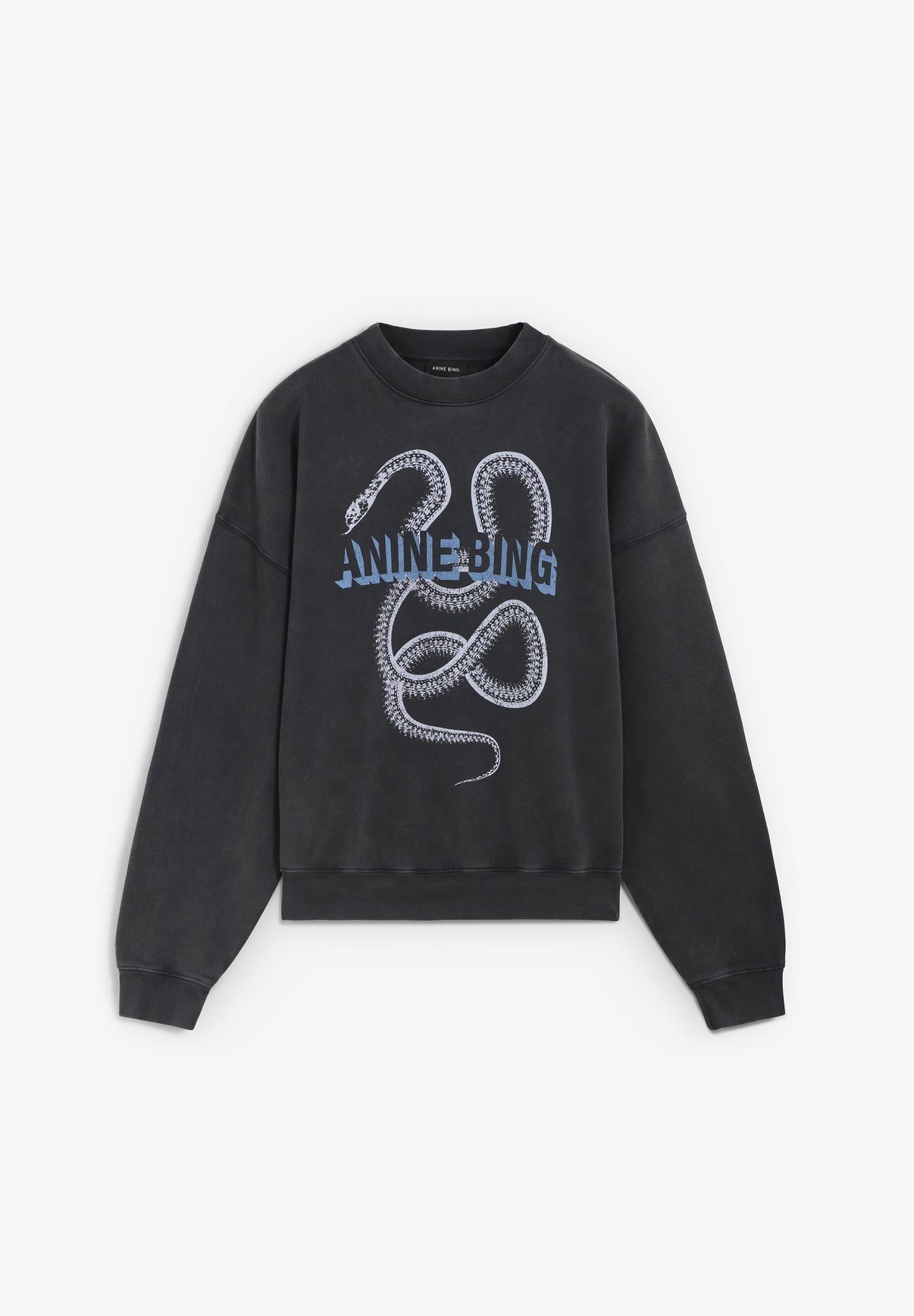 Sudadera Anine Bing confeccionada en felpa francesa 100 % algodón. Presenta Estampado serigrafiado descolorido con serpiente en la parte delantera. Corte holgado.