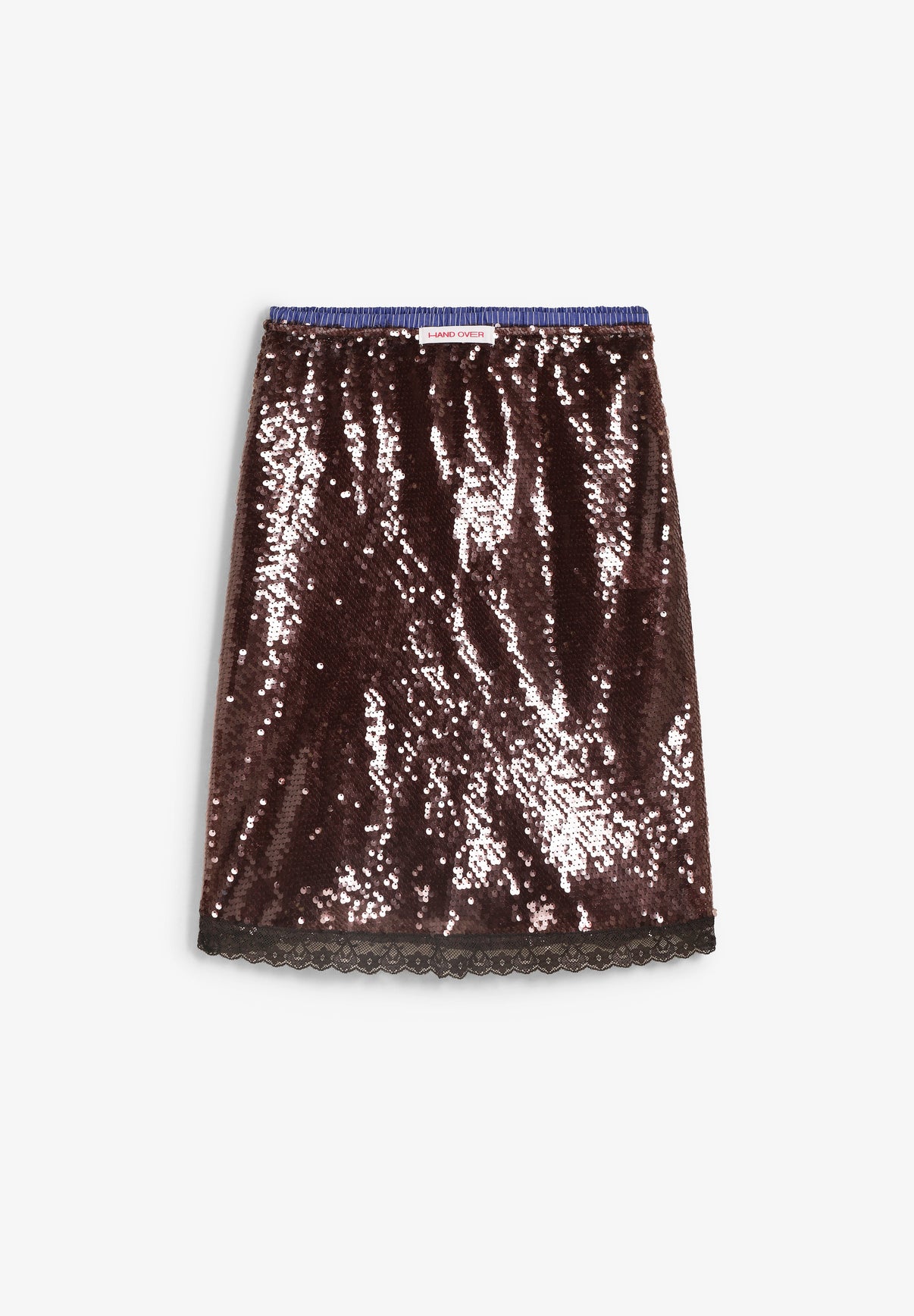 Falda Hand Over confeccionada 100% en poliéster. Presenta detalle de encaje en el bajo y cintura elástica.