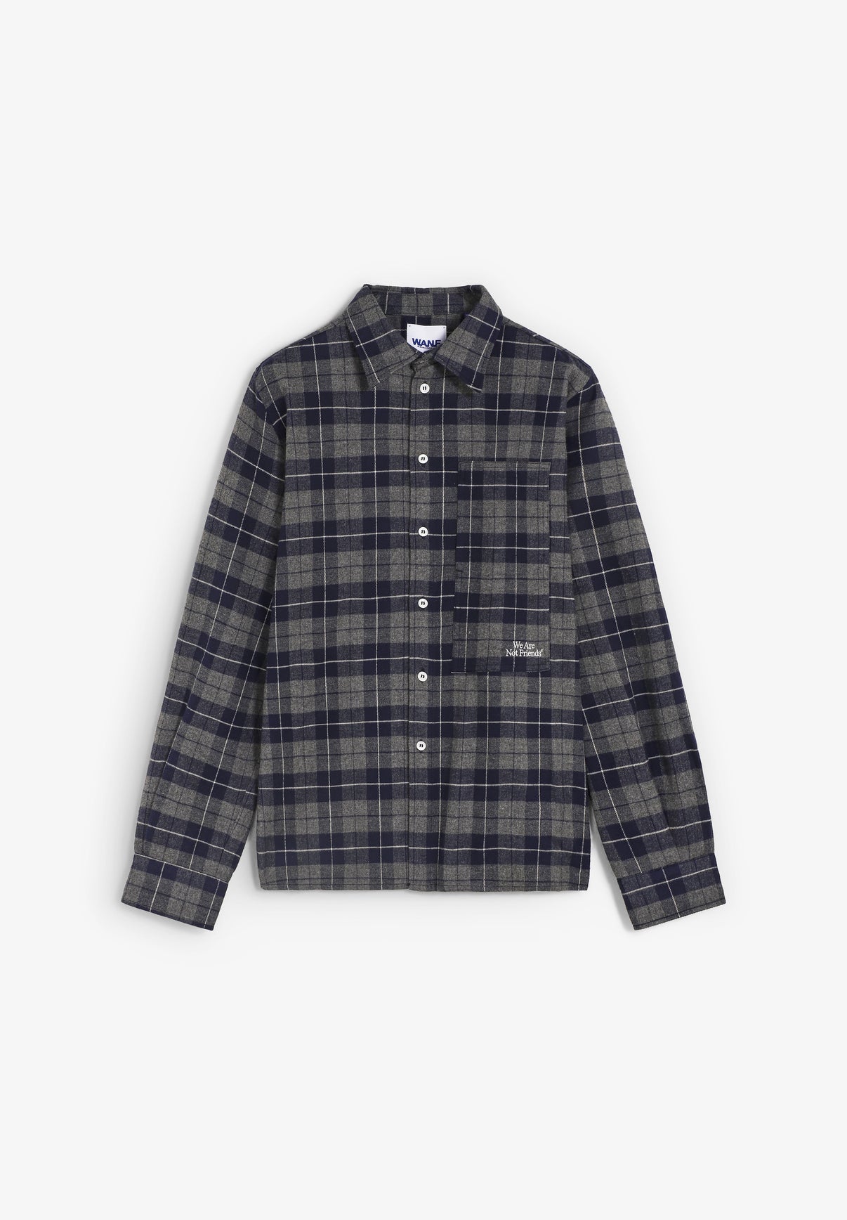 Camisa We Are Not Friends confeccionada en tejido de franela 100% algodón. Presenta un bolsillo doble en la parte delantera el cual cuenta con el nombre de la marca bordado.