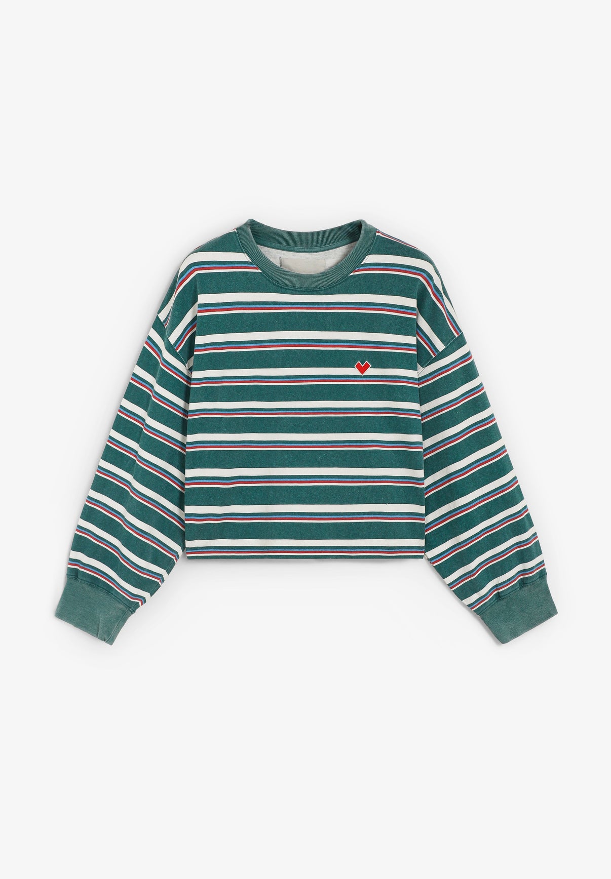 Camiseta manga larga Bellerose confeccionada 100% en algodón. Presenta cuello y puños lavados y cuello redondo. Corte oversize.