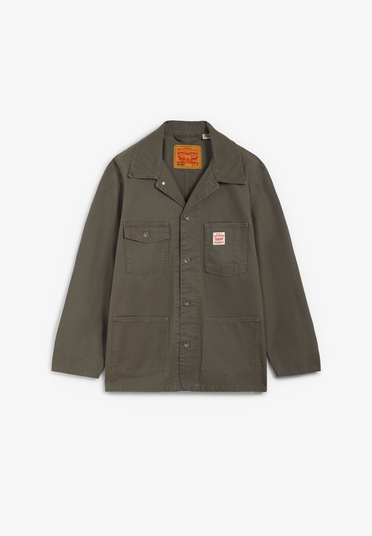 Abrigo LEVIS confeccionado 100% en algodón. Presenta cuello clásico en pico, un frontal con botones y bolsillos adicionales. Fit holgado.