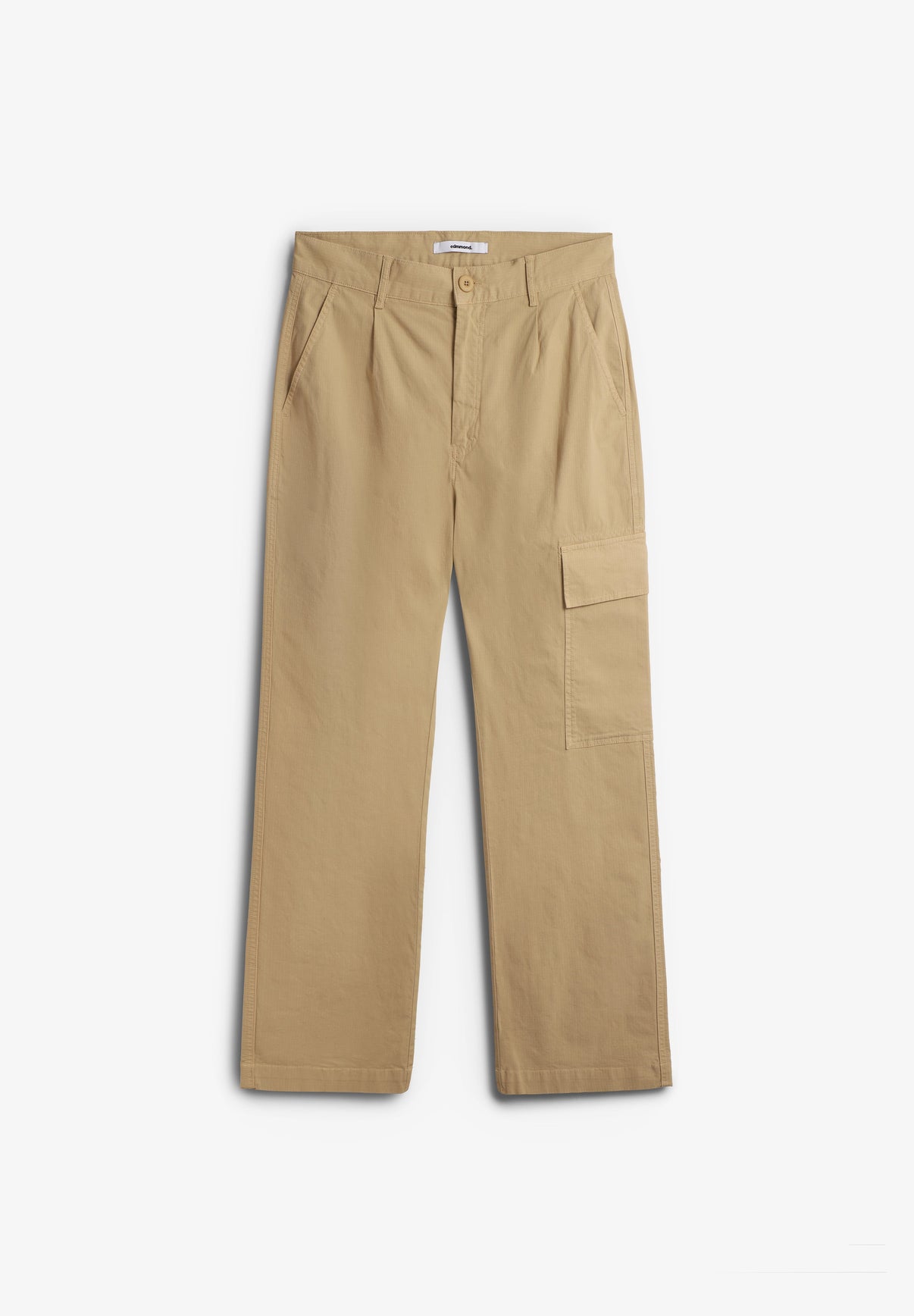 Pantalón cargo Edmmond Studios confeccionado en 97% algodón y 3% elastano. Presenta efecto ripstop, bolsillo de parche en el costado izquierdo, dos bolsillos con tapetas en la parte trasera, botón al tono y bragueta con cremallera. Fit relajado.