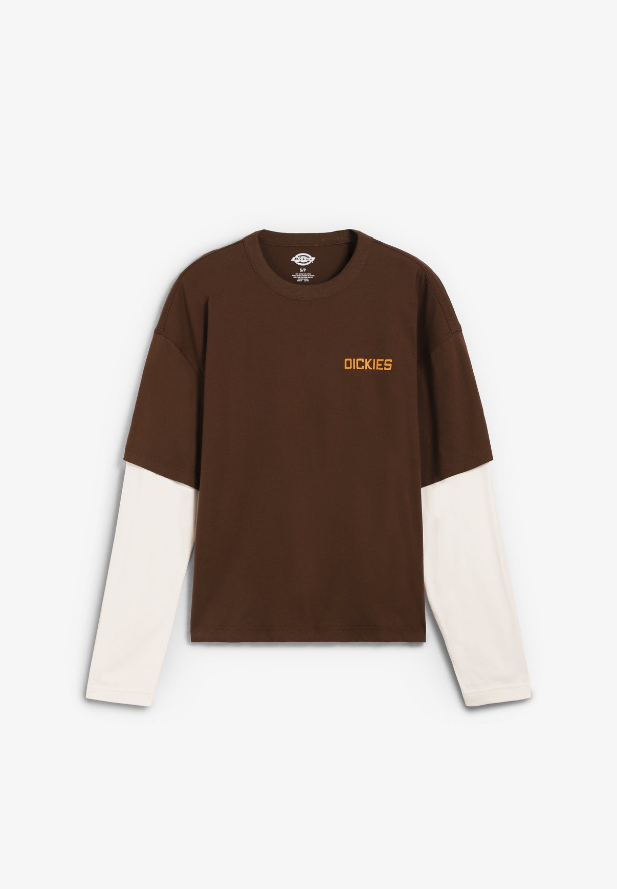 Camiseta con doble manga Dickies confeccionada 100% en algodón ringspun de 180 g/m². Presenta estampado de Dickies en el lado izquierdo del pecho, diseño en la parte trasera y etiqueta tejida de Dickies en el lateral. Corte oversized.