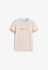 Camiseta Maison Labiche confeccionada 100% en algodón orgánico. Presenta bordado en el frontal, cuello y puños rematados con ribetes acanalados y dobladillo cosido con doble aguja. Corte ajustado.