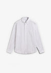 Camisa de manga larga Unfeigned confeccionada en 99% algodón y 1% spandex . Presenta diseño de rayas verticales, bolsillo en el pecho y cierre frontal con botones de nácar. Corte oversize.