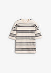 Camiseta Unfeigned confeccionada 100% en algodón orgánico. Presenta diseño de rayas horizontales y cuello redondo. Corte oversize.