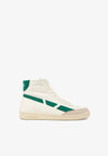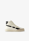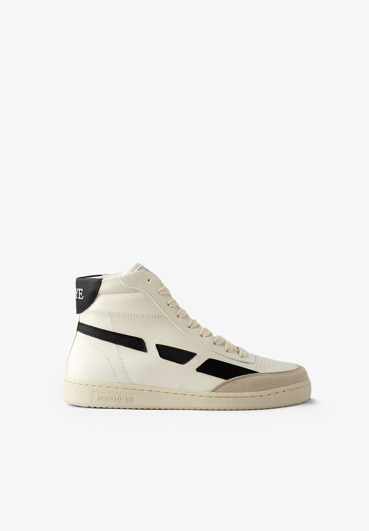 Ténis Saye confecionados em pele napa vegan à base de milho, com design de cano alto e colarinho acolchoado. Possuem palmilhas em poliuretano reciclado, atacadores em algodão e etiqueta com o logótipo da marca.