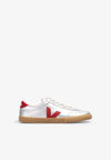 Ténis Veja confecionados em pele orgânica entrançada (OT) com acabamento fino e macio. Apresentam sola e palmilha recicladas, fecho em cadarço de algodão e detalhes do logótipo da marca.
