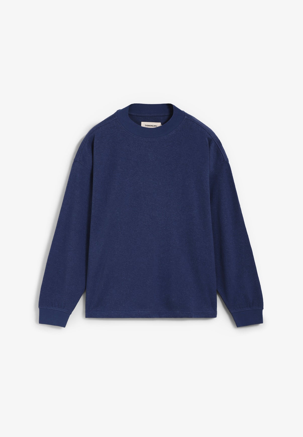 T-shirt Thinking Mu feita de cânhamo misturado com algodão orgânico. Apresenta gola redonda, mangas compridas e um corte oversized.