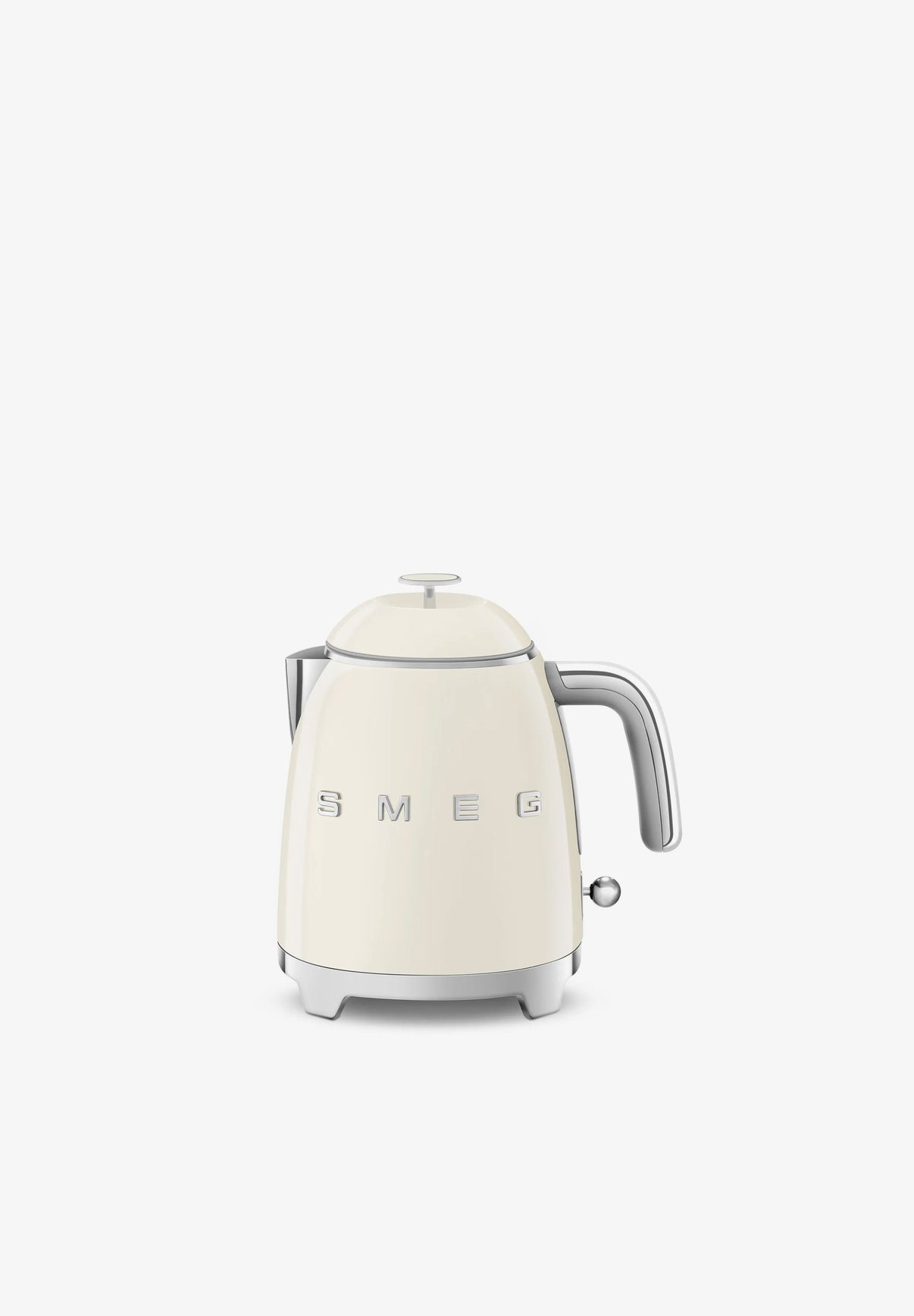 Mini chaleira Smeg fabricada em aço inoxidável com uma potência de 1400 W.