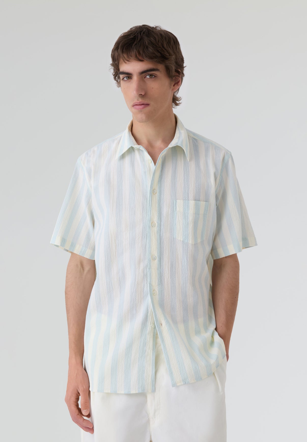 Camisa La Paz confecionada em tecido 98% algodão de mangas curta e botões de madrepérola.