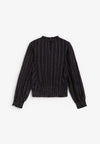 Blusa Sessun confecionada em 82% viscose, 16% seda e 2% lurex. Apresenta decote alto franzido, fecho com botões de pedraria na parte de trás do pescoço, mangas abalonadas com punhos elásticos, painel elástico franzido na bainha e painéis franzidos na frente e nas costas.
