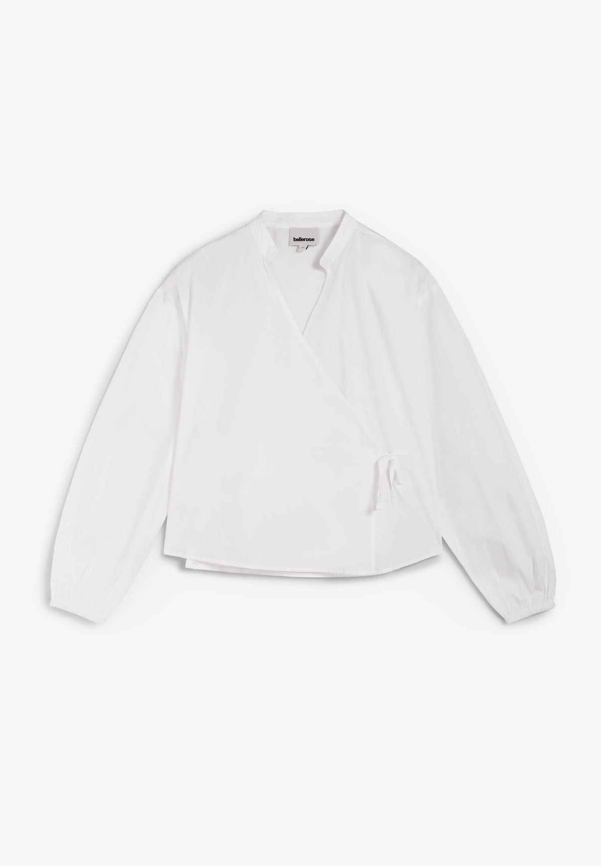 Camisa Bellerose confeccionada 100% en algodón. Presenta escote en V cruzado en la parte delantera, mangas largas con puños elásticos y cierre con lazos laterales (por dentro y por fuera).